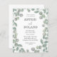Cette œuvre d'art romantique et originale présente des éléments aquarelles d'eucalyptus vert sauge rustique, offrant l'invitation de mariage sur le thème botanique idéale. Personnalisez facilement avec vos détails uniques pour une touche personnelle.