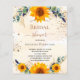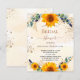 Un fond blanc et doré à l'aquarelle orné de tournesols, de verdure d'eucalyptus et de feuilles dorées et de paillettes d'or fausses. Personnalisez et ajoutez un nom et les détails de la fête.