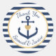 Mariage à thème nautique Merci Stickers - Personnaliser avec les noms - Bleu et blanc avec ancre - Faux Gold Border et Coeur