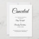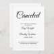 Voici une carte simple pour avertir vos invités s'il est nécessaire d'annoncer que votre mariage a été annulé. Utilisez les champs modèles pour ajouter vos détails personnels et faire de ce design élégant et minimaliste votre propre. L'arrière - plan blanc peut être changé à n'importe quelle couleur que vous préférez. Toutes les polices et couleurs sont également modifiables. Veuillez communiquer avec toute demande spéciale ou customiser de l'aide. D'autres pièces avec un autre libellé sont disponibles dans la collection.