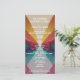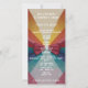 Cette invitation de mariage vibrante et élégante allie style minimaliste et éclat de couleur rayonnante, ce qui en fait un lieu idéal pour les couples à la recherche d'une esthétique ludique et raffinée. Le point central est un brillant spectre de teintes chaudes et cool rayonnant vers l'extérieur, créant un design arc-en-ciel captivant, symbolisant l'unité et la joie. Un arc rouge luxueux avec une perle centrale étincelante ajoute une touche de glamour et de sophistication. La typographie propre et moderne est placée avec goût dans le centre, encadrée par les rayons colorés, créant un équilibre entre le plaisir et la formalité.