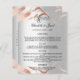 Menu mariage et chronologie du soir, programme. Un arrière - plan élégant à l'aspect faux argent décoré de veines en marbre d'or rose. Personnalisez et ajoutez vos noms, le menu et le programme. Lettres noires. 1 feuille = 1 menu/programme imprimé bord à bord.