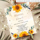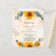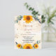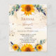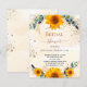 Un fond blanc et or à l'aquarelle orné de tournesols, de verdure d'eucalyptus et de feuilles dorées ainsi que de paillettes d'or. Personnalisez et ajoutez un nom et les détails de la fête.