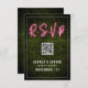 Un design moderne avec un néon au-dessus d'un fond de buis avec texte et garniture blancs sur le devant.