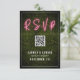 Un design moderne avec un néon au-dessus d'un fond de buis avec texte et garniture blancs sur le devant.