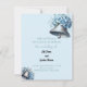 Ce charmant faire-part de mariage est une vision de sérénité et de romantisme, des tons bleus doux qui créent une atmosphère paisible. Au coeur du design se trouve une cloche mariage argentée chatoyante, symbolisant la célébration et l'union, agrémentée de grappes d'hydrangées bleues délicates. Leur beauté naturelle renforce le charme de l’invitation, en ajoutant de la profondeur et une touche florale à la fois intemporelle et joyeuse. Pas écrasant mais sophistiqué avec de l'espace pour ajouter vos détails de mariage comme souhaité.