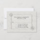Jolie carte RSVP réponse aux mariages d'hiver faite dans un arrière - plan tourbillonnant blanc d'hiver, avec une zone de texte blanche encadrée dans un style de cadre d'ombre de couleur argent. Graphiques de jolis flocons de neige argentés dans deux des coins et texte noir personnalisé. Personnalisez tout le texte pour votre journée spéciale. Produits correspondants disponibles.