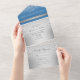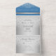 Elégant, adorable bleu glace et argent parties scintillant tout-en-un faire-part de mariage avec calligraphie moderne, flocons de neige étincelants et photo personnalisée du couple à l'arrière. Un choix parfait pour les mariages d'hiver contemporains ! Ajoutez votre photo, les détails du mariage et rsvp.
