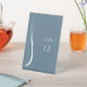 Un guéridon simple, sobre et minimaliste pour le numéro de table à votre réception de mariage. Il est accompagné d'un ornement floral dans les tons bleus poussiéreux !