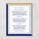 Personnalisez ce dépliant minimaliste d'informations sur les invités bleu marine, faux or et gris argenté avec tous les détails dont vos invités auront besoin. N'oubliez pas d'inclure votre site Web mariage afin que chacun puisse suivre les détails supplémentaires au fur et à mesure qu'ils entrent. Le design géométrique élégant de l'or et de l'argent jaunes simulés avec un bleu marine riche est répété sur le dos avec une simple couverture blanche et texte marine. Lorsqu'une carte d'enceinte est trop petite, ces tracts simples de mariage en métal bleu et mixte sont le choix idéal pour votre suite mariage.