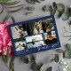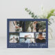Dites merci à vos invités mariages avec un collage photo où vous pouvez présenter cinq de vos belles photos mariages entourées d'un cadre bleu marine. Ajoutez vos noms et votre date de mariage dans une police noire moderne. Le Merci est écrit dans un charmant script manuscrit. Sur le dos, vous pouvez écrire à la main un message de remerciement personnel sur l'arrière - plan légèrement aligné.
