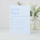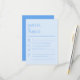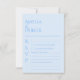 Ajoutez à votre gamme de papeterie mariage notre carte RSVP minimaliste, conçue pour correspondre à notre jeu d'invitation minimaliste de faire-part de mariage bleus. Cette carte est dotée d'un arrière - plan bleu clair, ce qui permet à vos invités d'écrire facilement leurs réponses. Le texte est dans une police bleu vif qui correspond à l'arrière - plan de l'invitation dans ce jeu, assurant un style continu. La typographie soigneusement conçue vient compléter l'esthétique globale, alliant simplicité et fonctionnalité. Parfait pour les couples qui aiment le design moderne et cohésif, cette carte RSVP est l'ajout idéal à vos préparations mariages.