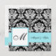 Mariage bleu Monogramme Damask Invitation