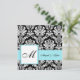 Mariage bleu Monogram Damask Invitation. Papier à lettres mariage correspondant disponible dans cette galerie.