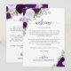 Ces belles cartes sont conçues pour accueillir vos invités et les membres spéciaux de votre mariage. Le design rustique boho chic comprend des roses peintes à la main à l'aquarelle, des feuilles d'eucalyptus et de la verdure de jardin dans des nuances de violet, prune et lavande. Le devant comporte un espace pour un message de bienvenue, et au dos se trouve le programme ou l'itinéraire. Excellent ajout à un sac d'accueil de mariage, et une merveilleuse façon de remercier vos invités de célébrer avec vous !
