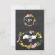Une suite de faire-part de mariage boho avec une couronne de fleurs blanches composée d'une flore boisée colorée. L'arrière - plan du tableau de bord donne à ce design une ambiance décontractée qui est parfaite pour les mariages extérieurs.