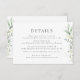 Boho Sage Greenery Botanical Olive Elégant Simple Détails Mariage Carte de boîtier. Style bohème arrangé botanique minimaliste Détails Carte avec des botaniques vert sauge boho élégants et simples en aquarelle imprimée à la main. L'arrière - plan d'aquarelle verte est magnifique pour les mariages boho et les mariages verts. Carte de détails modifiable pour les mariages du printemps, de l'été, de l'automne et de l'hiver.