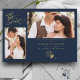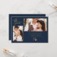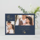 Carte de Faire-Part de Mariage avec enveloppe, Branches à la mode Bleu Marine, 2 Photos.