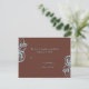 Cette invitation de mariage classique et élégante RSVP présente un arrière - plan brun et chaleureux aux accents floraux turquoise et au texte turquoise, entièrement personnalisable pour dire ce que vous voulez. Correspondance d'invitation et plus disponible dans ma boutique! Produits correspondants disponibles ! Cliquez sur les images pour les voir.