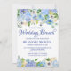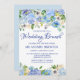 Des fleurs d'aquarelle bleu doux se mêlent à des fleurs d'ivoire crémeuses et une touche de violet pour créer un design romantique pour cette invitation mariage au brunch. Le mariage Brunch est écrit dans une police de caractères bleu script sophistiquée. Le reste du texte est dans le même bleu - mais utilise un texte de bloc simple et moderne.