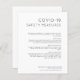 Une alternative papier de 4,5 po x 5,6 po, abordable. Les enveloppes sont en option. Un moyen pratique de donner à vos invités des informations mariages sur la mesure de sécurité COVID en place lorsque vous envoyez leurs invitations avec votre adresse de site mariage, avec cette conception typographique entièrement personnalisable sur un arrière - plan blanc. La typographie peut être facilement personnalisée à vos propres détails. Vous pouvez également modifier le texte et les couleurs arrière - plans si vous souhaitez faire correspondre votre thème mariage via l'option Personnaliser supplémentaire.