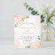 Un arrière - plan blanc avec des traits d'aquarelle rose pâle et or rose. arrière - plan. Décoré de fleurs aquarellées, de fleurs roses florales, d'orchidées blanches et d'une gerbera jaune, de végétation d'eucalyptus et de sprigs en faux or. Personnalisez et ajoutez vos noms et les détails du mariage. Lettres noires et dorées.