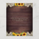 Des invitations rustiques et mariages campagnards imprimées sur du papier léger, idéales pour les budgets conservateurs et la livraison manuelle aux invités. Beau bois de campagne avec lumières cordon brillantes et accentué de tournesols et dentelle dans une couleur crème d'ivoire. Tout le texte est modifiable pour modifier le libellé en fonction de vos besoins. Contactez le concepteur via Zazzle Conversation ou makeitaboutyoustore@gmail.com si vous souhaitez modifier ce design, sur un autre produit ou des éléments de coordination.