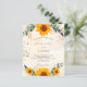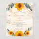 Un arrière - plan blanc et doré décoré de tournesols, de verdure d'eucalyptus et de feuilles dorés et de poussière de parties scintillant en faux or. Personnalisez et ajoutez vos noms et les détails de votre fête.