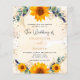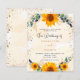 Un arrière - plan blanc et doré décoré de tournesols, de verdure d'eucalyptus et de feuilles dorés et de poussière de parties scintillant en faux or. Personnalisez et ajoutez vos noms et les détails de votre fête.