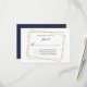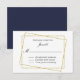 Carte de réponse mariage élégante faite en blanc avec illustration graphique d'un cadre à double parties scintillant en or asymétrique, avec bleu marine sur le dos. Le texte noir est prêt à être personnalisé, pour votre mariage. Des produits correspondants sont disponibles.