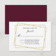 Carte de réponse mariage élégante faite en blanc avec illustration graphique d'un cadre à double parties scintillant or biaisé, avec marron sur le dos. Le texte noir est prêt à être personnalisé, pour votre mariage. Des produits correspondants sont disponibles.