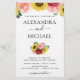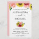 Budget Blush Pink and Yellow Sunflower Rustic Outdoor Eucalyptus Verdure Foliage Aquarelle Printemps Mariage Élégant et moderne Invitations sur arrière - plan blanc - comprend une belle et élégante typographie script avec feuilles botaniques modernes et verdure pour la célébration spéciale de mariage.