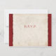 RSVP présente des garnitures rouges canneberges sur les côtés avec une texture motif frileuse et de papier parchemin déchiré au milieu pour une sensation rustique et vintage de mariage campagnard.