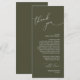 Partagez l'amour et montrez votre appréciation à vos invités, lorsqu'ils s'assoient à leur siège et lisent cette carte de remerciement personnalisée et charmante, dans le thème vert olive. C'est une façon merveilleuse de commencer votre fête spéciale ! Cette carte vous donnera le ton pour un événement inoubliable. Le carte de remerciements est décoré dans un style moderne, ajoutant une touche d'élégance intemporelle à votre célébration. Conçu par TeeshaDerrick