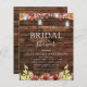 Invitation de Fiançailles de Mariage Automne ou Mariage Champêtre Rustique à Petit Budget en Plein Air sur Bois Sombre avec Tournesols Bourguignons, Orange et Jaunes dans des Pots Mason sur des Guirlandes Lumineuses - comprend une belle et élégante typographie script pour la célébration de la future mariée.