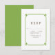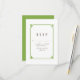 Carte RSVP simple et minimaliste Déco Chic Wedding avec une bordure ornementale d'art vert moderne. Cette carte de réponse classique et élégante est facile à customiser avec vos détails mariages. Pour plus d'options de personnalisation, cliquez sur Personnaliser.