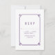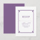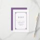 Carte RSVP simple et minimaliste Déco Chic Wedding avec une bordure ornementale moderne d'art violet. Cette carte de réponse classique et élégante est facile à customiser avec vos détails mariages. Pour plus d'options de personnalisation, cliquez sur Personnaliser.