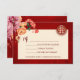 Les tons rouges, oranges et neutres donnent des fleurs de pivoine sur un arrière - plan rouge chatoyant et un double symbole de bonheur doré. Carte Mariage chinoise RSVP.