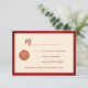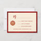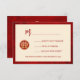 Un double symbole de bonheur doré sur un arrière - plan rouge chatoyant. Carte Mariage chinoise RSVP. À l'arrière, il y a un code qr scannable pour votre site mariage.