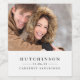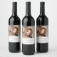 Les étiquettes de vin chic et élégant sont un moyen parfait de personnaliser vos faveurs de mariage de vin. Design présente votre photo préférée avec votre nom de famille, date mariage et vin variétal sous le classique bloc gris charbon de bois sur un arrière - plan blanc.
