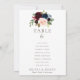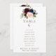 Complimentez votre événement mariage rustique avec un tableau de table mariage classique de luxe 6 places. Le design présente de belles fleurs rose, rousses, bleues, navales et bordeaux peintes à la main et agrémentées de feuilles verts, soigneusement groupées en bouquets élégants pour embellir vos cartes d'invitation à l'événement. La carte imprime recto verso (recto verso).