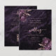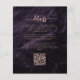 Cette élégante invitation de mariage présente des bouquets floraux violets mis en valeur avec de la verdure en faux feuillet rose gold dans deux coins, sur une image de fond d'agate aquarelle violette. Le texte rose personnalisable combine des polices serif, italique et manuscrites. Le verso offre un espace pour les détails du mariage, ainsi qu'un code QR que les invités peuvent scanner pour visiter votre site web et répondre.