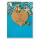 coeur en papier marron avec coquillages, fleurs et étoiles de mer sur bois turquoise pour les jeunes mariés