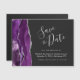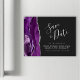 Cette élégante sauvegarde la carte magnétique date dispose d'une bordure d'aquarelle violette taillée avec parties scintillant faux argent. Le texte personnalisable combine écriture manuscrite gris argenté, copperplate et italique sur un arrière - plan non noir.