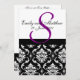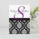 Invitation mariage damassé avec Monogramme violet. Design de disposition par Elke Clarke©2009. Graphiques sous licence pour use.com et WhiteWhimsicalWeddings.blogspot.com. Customisez avec vos noms monogrammes et couleurs mariages. Ajoutez toutes vos informations de mariage au verso de la carte en utilisant les invites de menu faciles à utiliser de Zazzle.