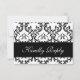 Carte RSVP Invitation Mariage damassé Blanc Noir. Customisez avec vos informations.
