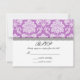 Carte de réponse RSVP classique en damas violet. La carte est entièrement personnalisable et le texte peut être modifié. Contactez-nous pour des demandes personnalisées. La papeterie correspondante est disponible dans ce magasin.