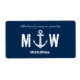 Étiquettes de bouteille d'eau mariage marine bleu et blanc sur mesure ancre marine. Modèle autocollant élégant personnalisé avec design d'ancre bateau / bateau. Typographie de script élégant pour les noms de mariée et mariée et message de remerciement. Utilisez comme décor de table classe ou merci pour les invités à la mariage / fête de mariage. Le logo comprend le nom ou le monogramme plus la date du mariage. Design classique avec couleur arrière - plan personnalisable. Parfait pour les mariages de destination. Aussi grand comme étiquette de vin. Merci d'avoir rejoint notre journée spéciale. Le thème de la plage maritime. Style vintage. Les ancres d'apparence détendues pèsent sur l'icône.