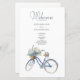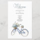 Ce programme de mariage d'inspiration bohème comprend une bicyclette bleue portant un panier rempli de belles fleurs bleues et blanches et une paire d'oiseaux d'amour sur le siège. Doux, simple et élégant. Personnalisez facilement ce design avec vos informations et complétez le look avec la papeterie et les options accessoires avec ce thème. Particulièrement agréable pour les mariages de printemps et d'été. Basé sur une aquarelle originale par © Lisa Audit Art. Entourez-vous avec l'art qui fait chaud au coeur.