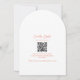 Une faire-part de mariage voûtée minimaliste mais romantique, aux tons pastel rose pêche et une charmante paire de lovebirds. Ce design contemporain allie typographie moderne et mise en page propre, et comprend un code QR personnalisé RSVP sur le dos pour des réponses sans effort de la part des clients. Sa forme en arc et sa palette de couleurs fraîches en font l'endroit idéal pour les mariages branchés à la fin de l'été ou au début de l'automne. Un choix parfait pour les couples modernes qui apprécient à la fois le style et la simplicité.